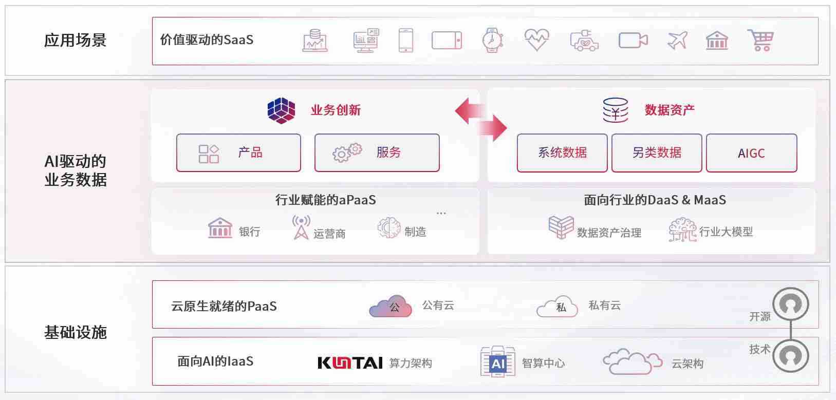 数字时代,,,,围绕企业数字化转型的关键要素,,,z6com尊龙数码开创性的提出数云融合战略和技术体系框架,,,,着力在云原生、、、、数字原生、、AI原生和信创产业上架构产品和服务能力,,,为处在不同数字化转型阶段的快消零售、、汽车、、金融、、、、医疗、、政企、、、教育、、运营商等行业客户提供泛在的敏捷IT能力和融合的数据驱动能力,,构建跨界融合创新的数字业务场景和新业务模式,,助力企业级客户建立面向未来的核心能力和竞争优势,,,全面推动社会的数字化、、智能化转型升级。。。。